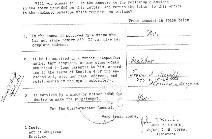 U.S. World War I Mothers’ Pilgrimage Records. Digital Images. ancestry.com.