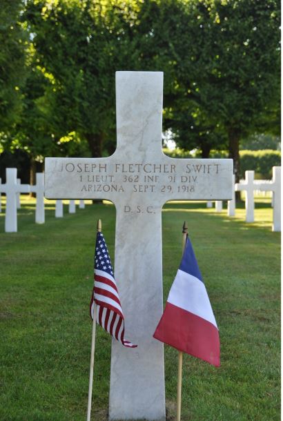 Swift was initially buried in an isolated grave north of the Bois de Cierges. His father indicated his desire for his son to be buried in France. He was re-interred in Meuse-Argonne Cemetery in Romagne-sous-Montfaucon, France.