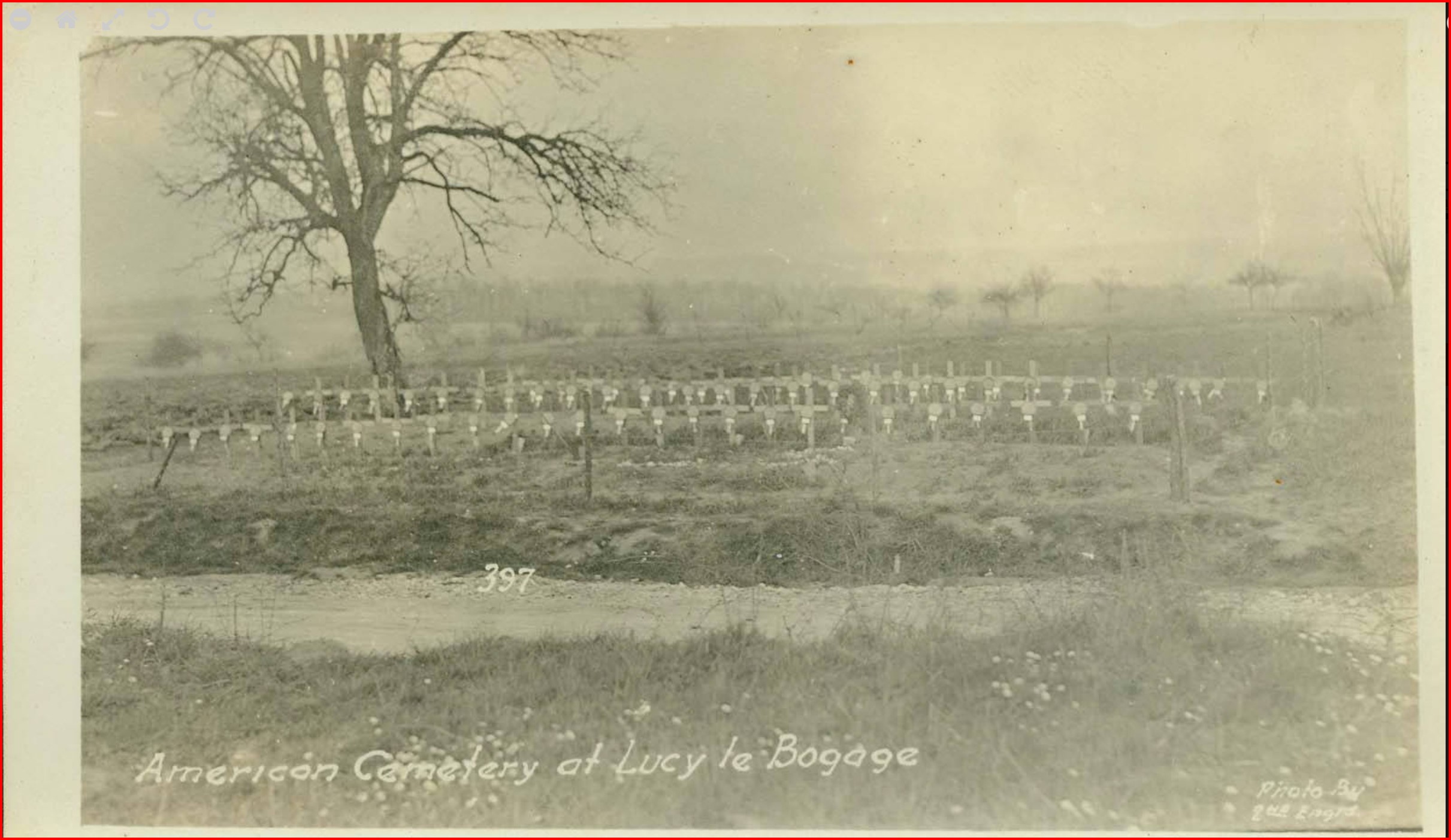 American cemetery at Lucy le Bocage. Photograph. c.1918. Oklahoma State University Archives (2011-072b1f1_30). https://dc.library.okstate.edu/digital/collection/JHW/id/166.
