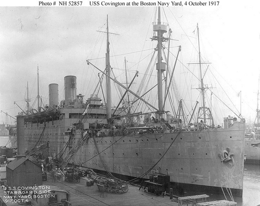 Nine months later, on May 9, 1918, Musician Third Class Bennett took the troop train to Hoboken, New Jersey, passing through Maryland and boarded the USS Covington with the 115th Infantry of the 29th Division bound for France with 4,200 soldiers. The band played concerts to ease the boredom aboard ship before the USS Covington docked in the harbor near Brest, France on June 17, 1918.