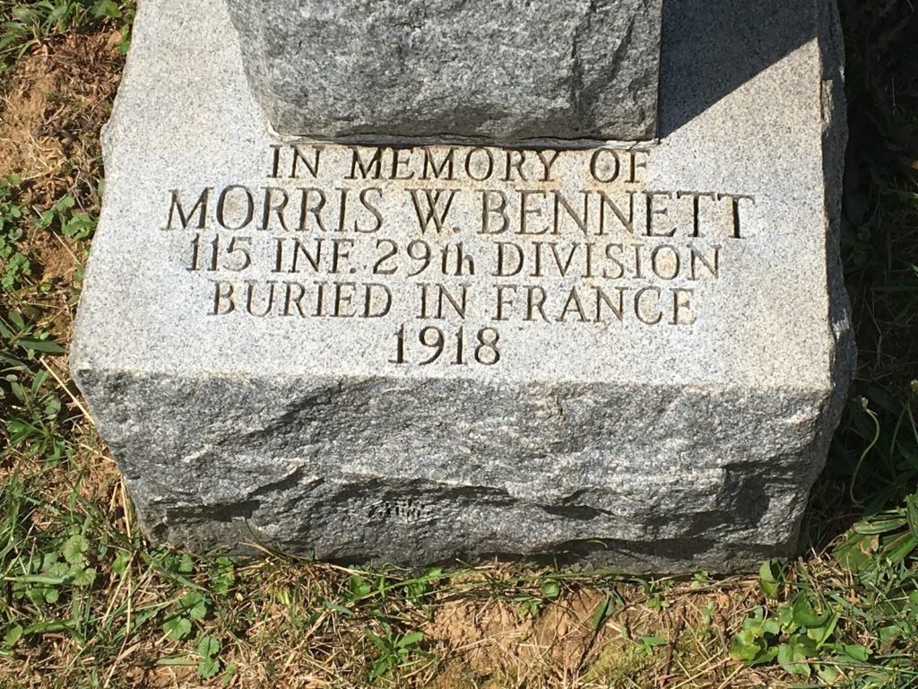 “MORRIS BENNETT, Frederick, Dies in France–Another Frederick boy has died in France.” The Daily News [Frederick, Maryland], November 9, 1918.