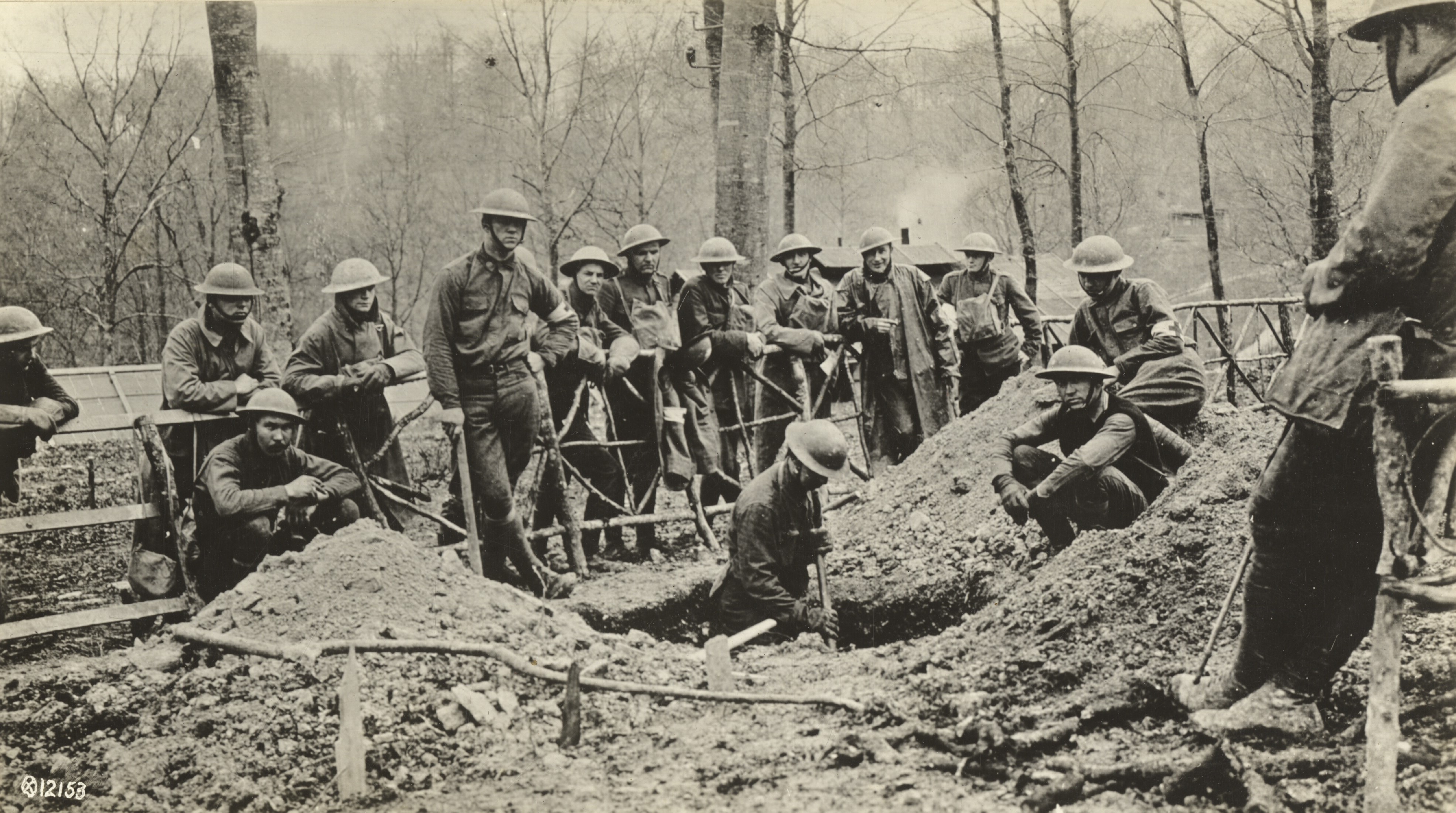 Starting a shelter at headquarters, 6th Regiment, Marines…. Photograph. June 25, 1918. National Archives and Records Administration (111-SC-12153). Image.