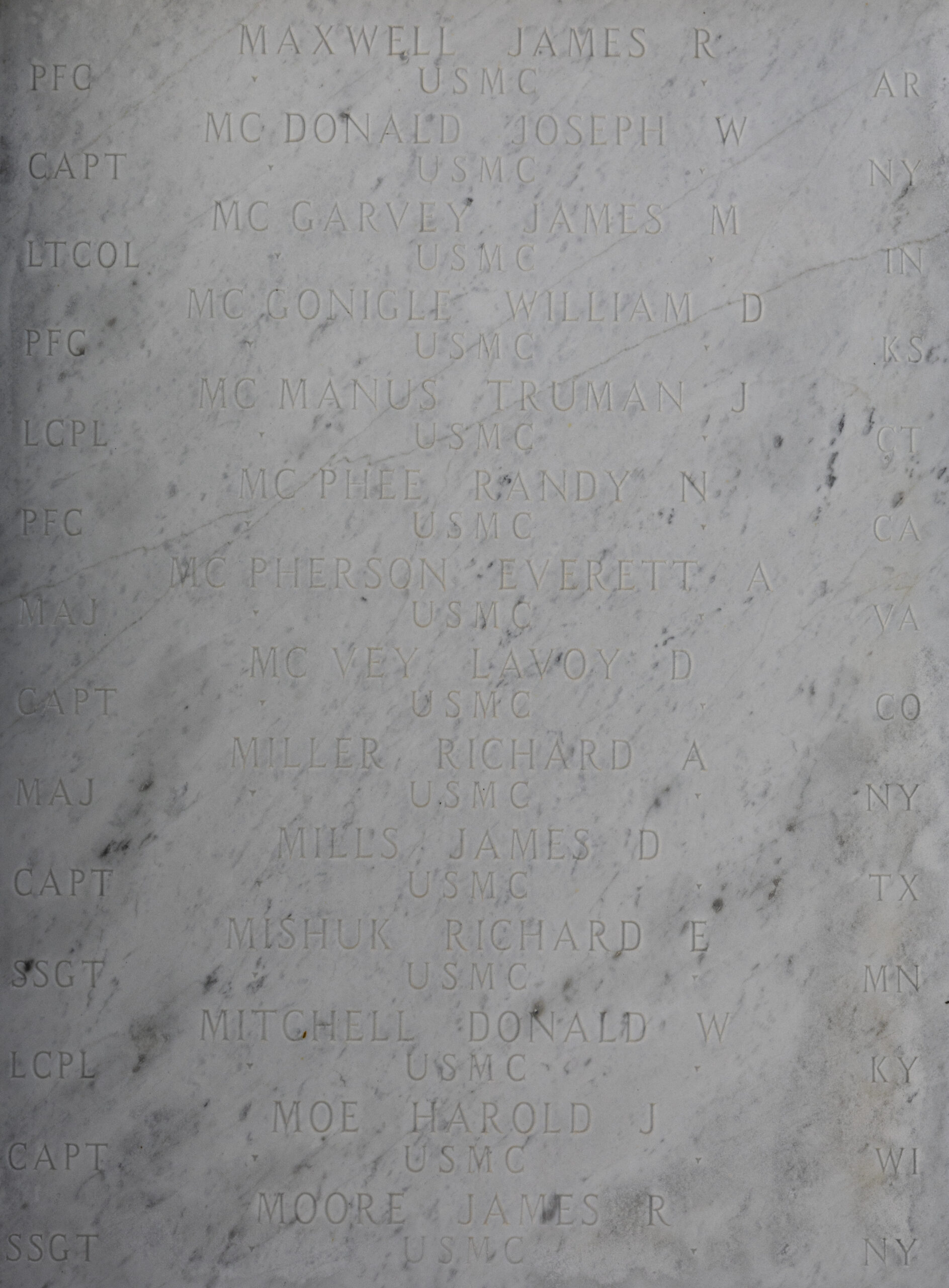 James Maxwell is honored with a memorial bridge on Highway 9 north of Morrilton, named the “United States Marine Corps Private First Class James Rickey Maxwell Memorial Bridge.” Fragments of his remains were laid to rest with the other heroes who died during the crash, in a single casket at Arlington National Cemetery on May 15, 2013. He is also memorialized on the Honolulu Memorial at the National Memorial Cemetery of the Pacific in Honolulu, Hawaiʻi.