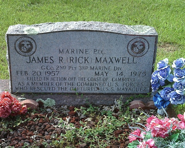 Private First Class James Maxwell was initially listed as Missing in Action after the helicopter crash on May 15, 1975, during the SS Mayaguez rescue mission off the coast of Cambodia. His remains were recovered and identified in 2012, nearly four decades later, through advances in forensic technology and DNA analysis by the Defense POW/MIA Accounting Agency (DPAA). He was given a full military honor ceremony at Woolverton Mountain Cemetery on August 30, 2012.