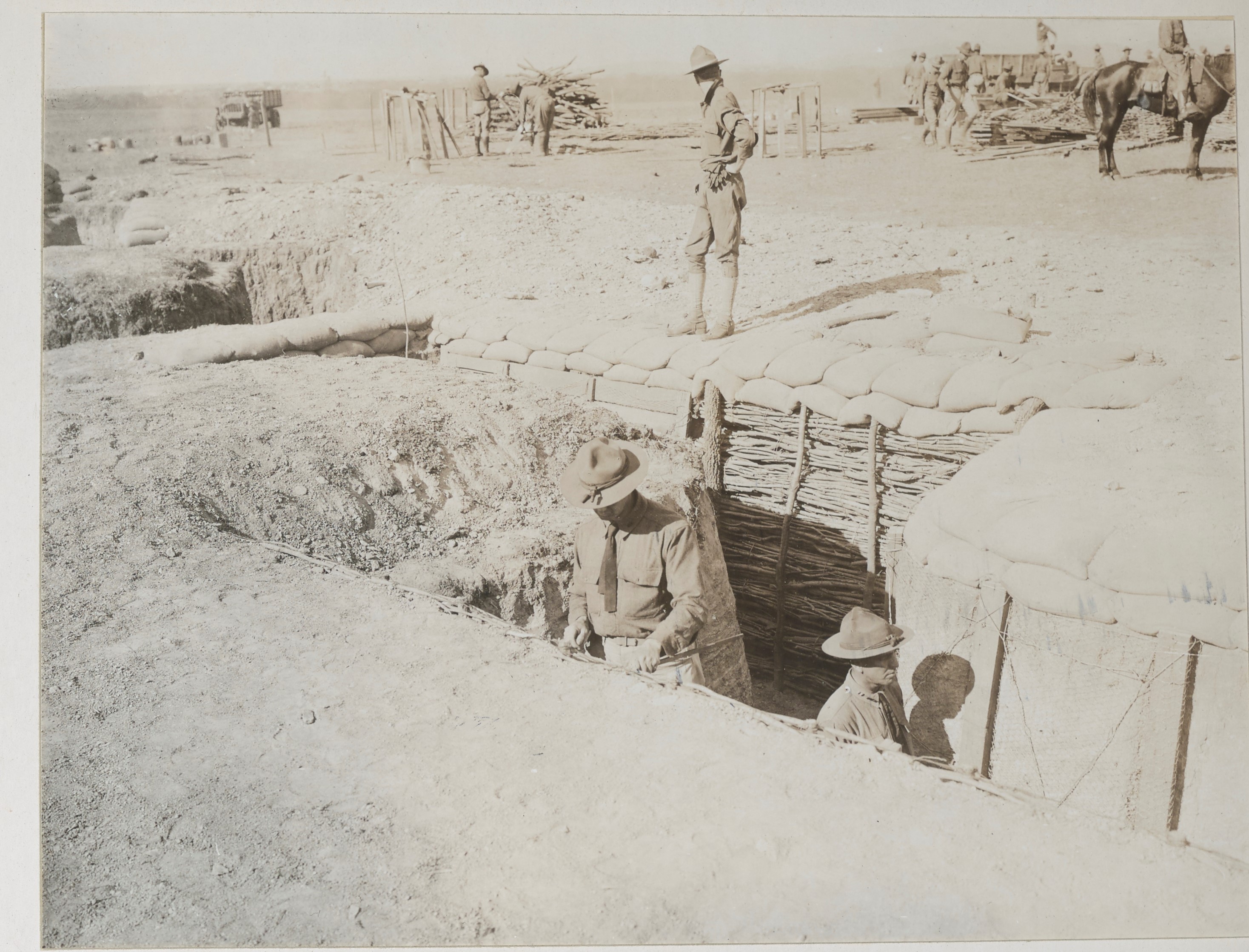 Trench Warfare – Fort Sam Houston, Texas. Fixing for practice work. Photograph. 1918. National Archives and Records Administration (111-SC-10781). Image.