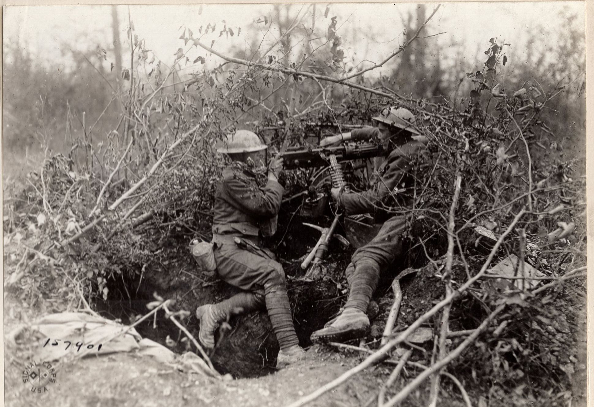The Machine Gun Co. to which these men belong is supporting the 358th…. Photograph. October 25, 1918. National Archives and Records Administration (111-SC-157901). Image.