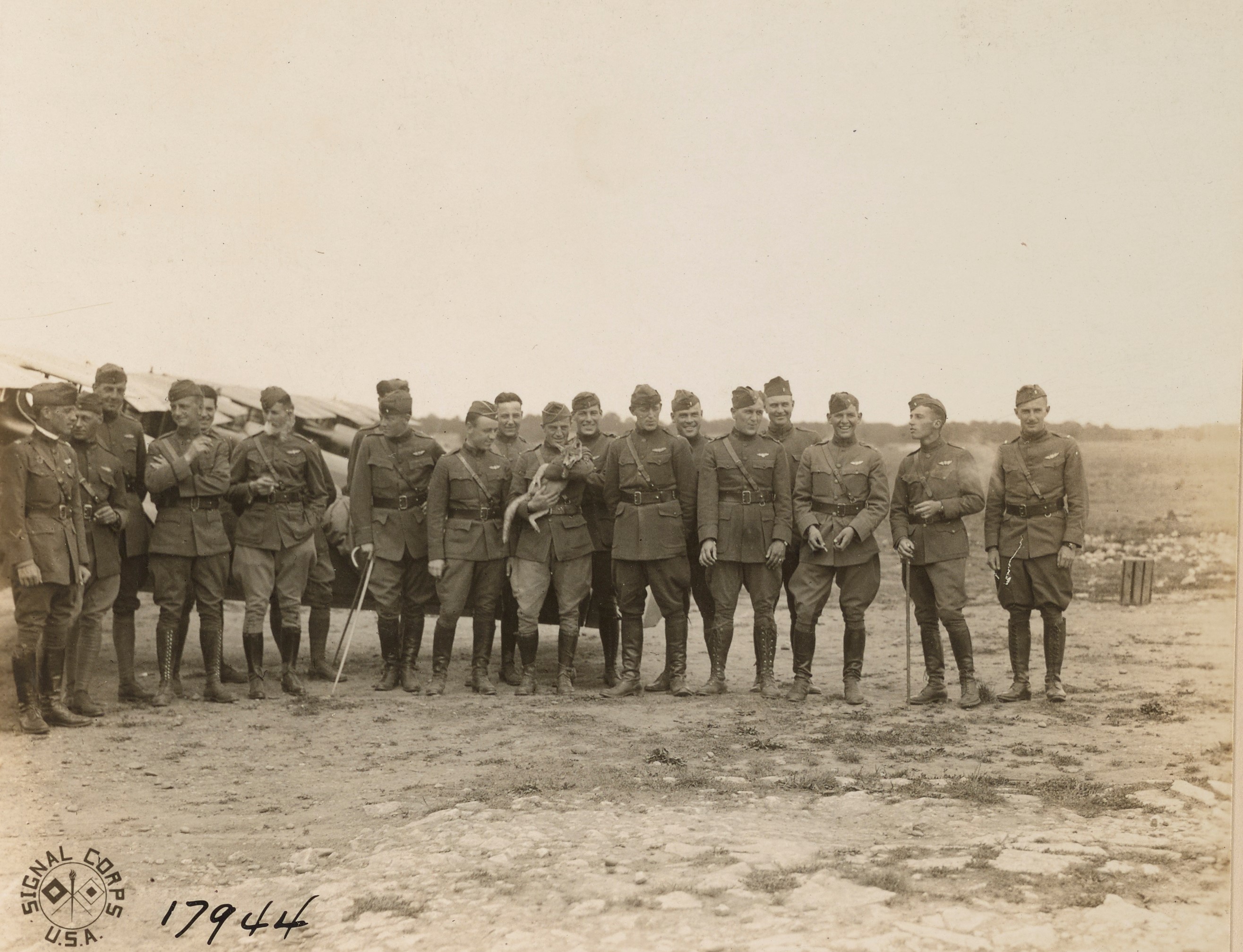 Trabold, E.B. Group of 139th Aero Squadron. Commanding Captain D.L. Hill. Near Toul, France. Photograph. July 15, 1918. National Archives and Records Administration (111-SC-17944-ac). Image.