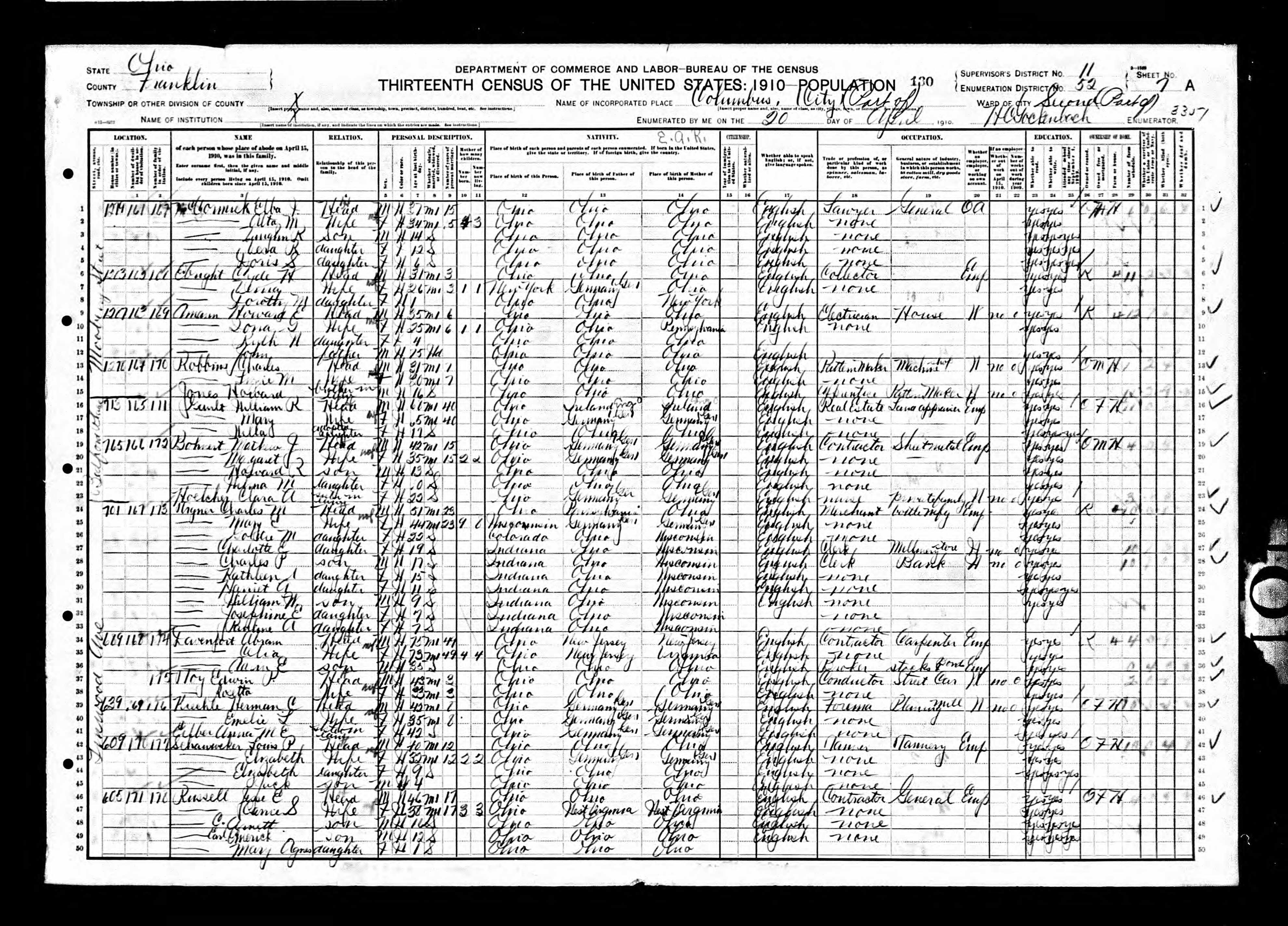 Ohio. Franklin County. 1910 U.S. Census. Digital Images. ancestry.com.