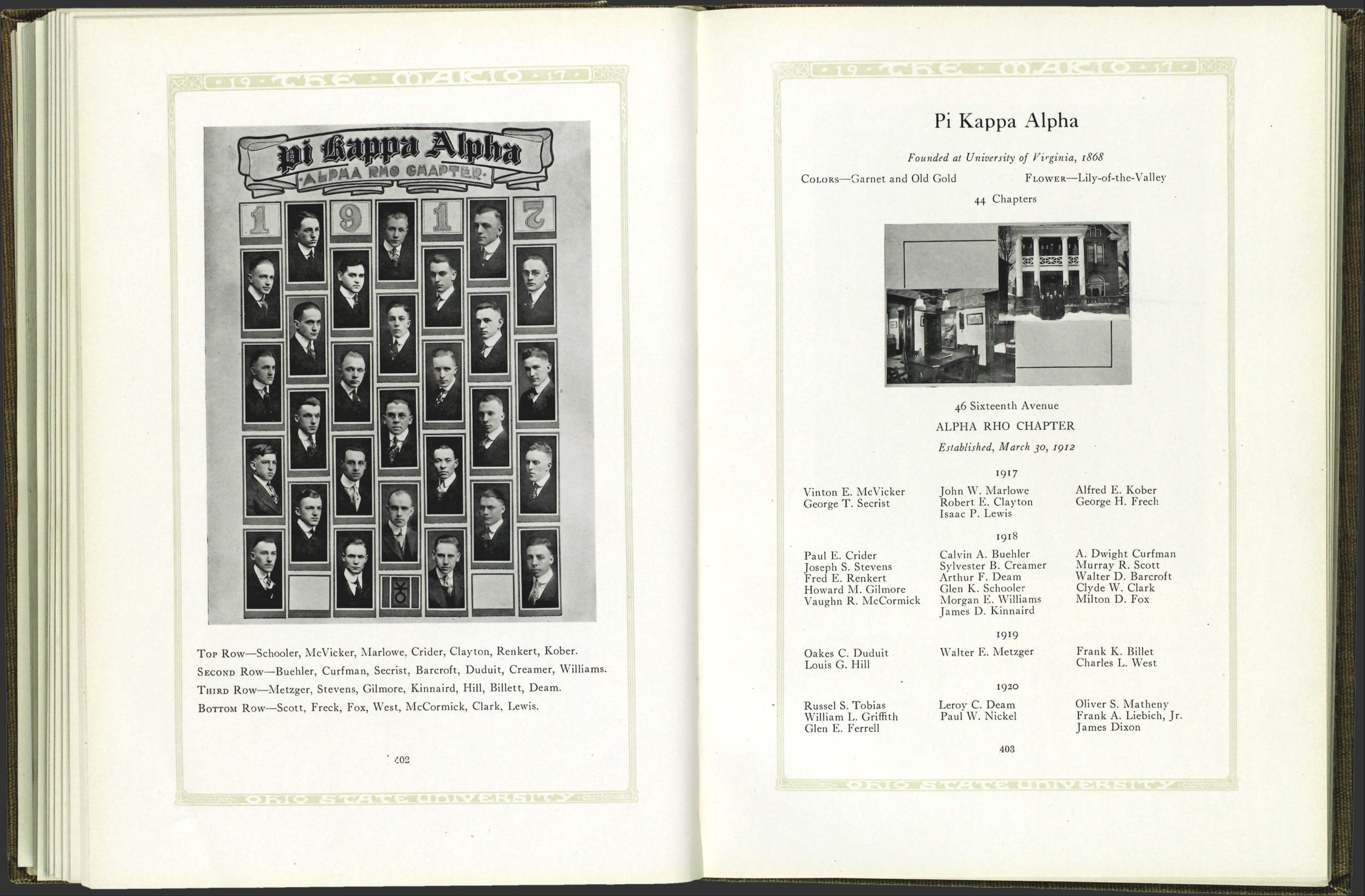 “Pi Kappa Alpha” The Makio (1917). The Ohio State University. edu.arcasearch.com/usohosy/.