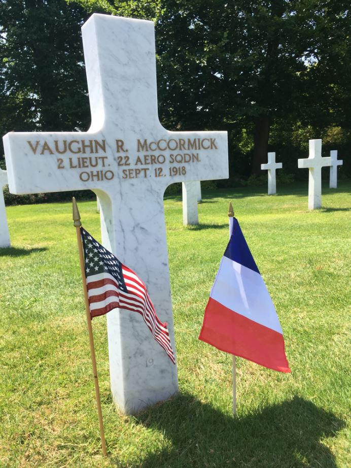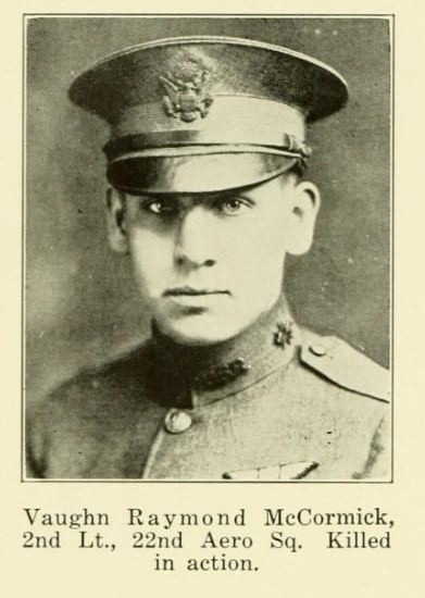 Upon returning to camp on the opening day of the battle, McCormick’s plane crashed. It was reported that he sustained gunshot wounds. On September 12, 1918, McCormick was killed in action. He is buried in St. Mihiel American Cemetery in Thiaucourt-Regniéville, France.