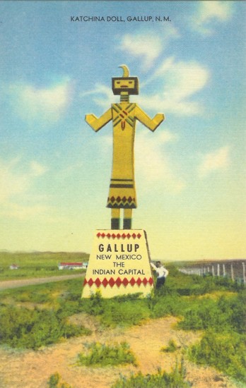 Residents benefited from the decision to pave the “Old Trails Highway” through town in 1934 as a part of Route 66. Hotels were established, and a “Giant Katchina” roadside attraction beckoned travelers to visit the “Indian capital.”