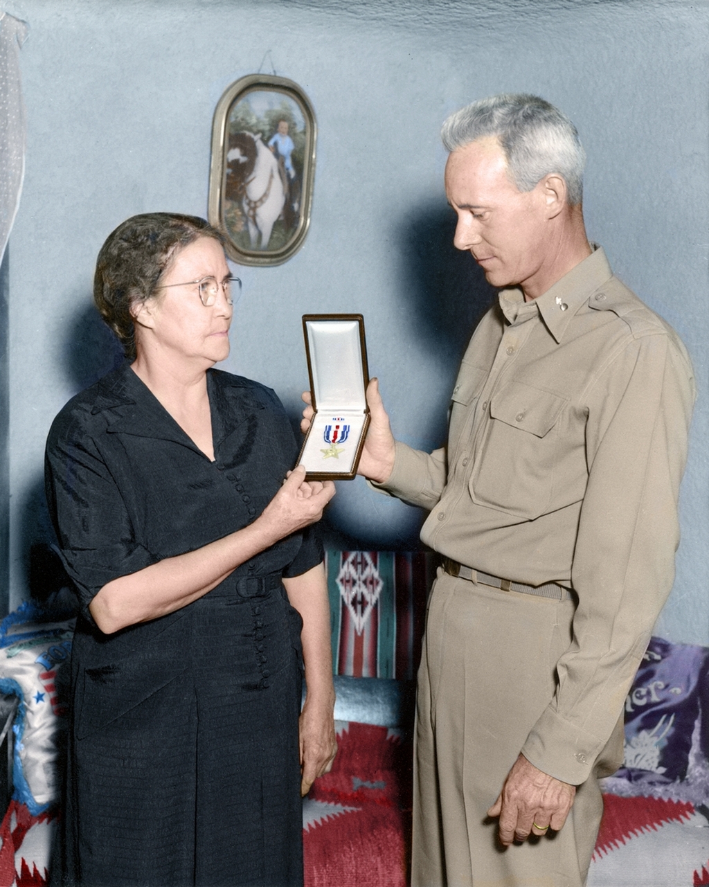 The President of the United States posthumously awarded Chavez the Silver Star. The medal was presented to his mother, Lupita Chavez Bustamante Franco, on June 6, 1950, in her home by Lieutenant Colonel Frank Eccles. The citation reads: