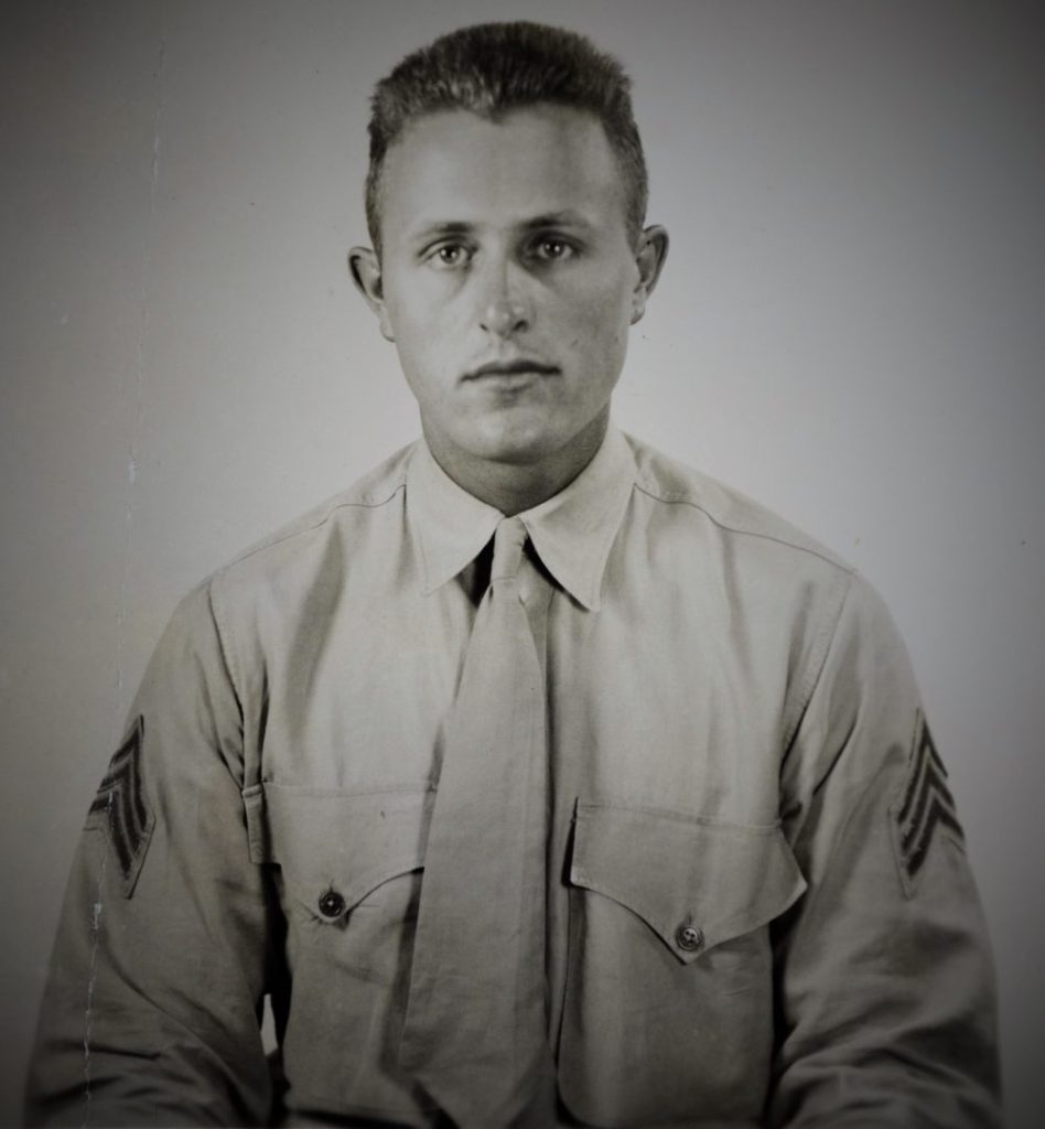 Perry enlisted in the U.S. Marine Corps on October 6, 1941, and reported to Parris Island, South Carolina for basic training. After basic training, Perry requested to be sent to paratrooper school after learning that his brother had been wounded while serving as a paratrooper. Promoted to the rank of corporal in April 1943, Perry served in the Headquarters and Service Company of the Parachute Battalion Training Center.