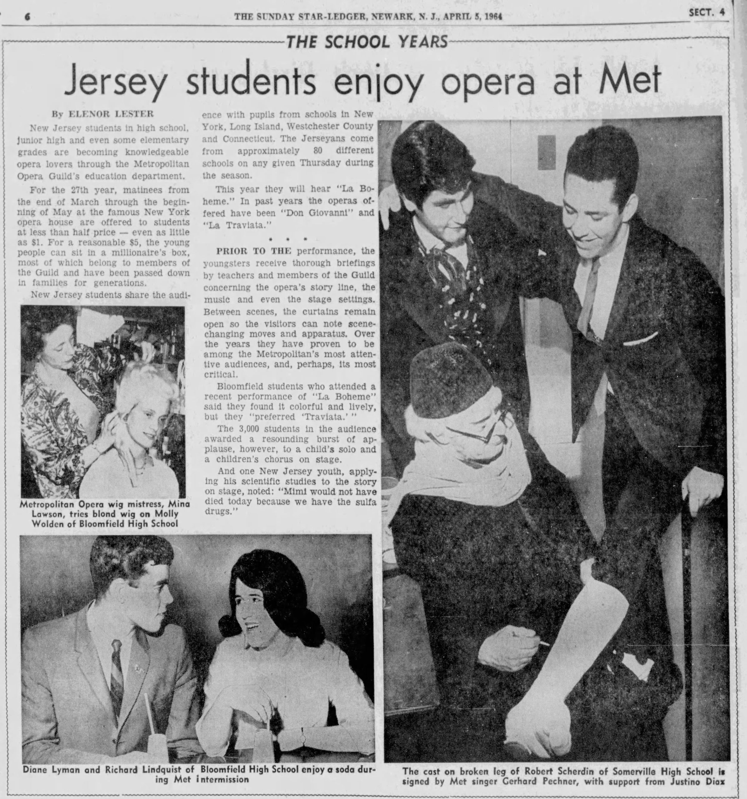 “Jersey Students Enjoy Opera at Met.” The Star Ledger [Newark, NJ], April 5, 1964. Newspapers.com (1108792311).