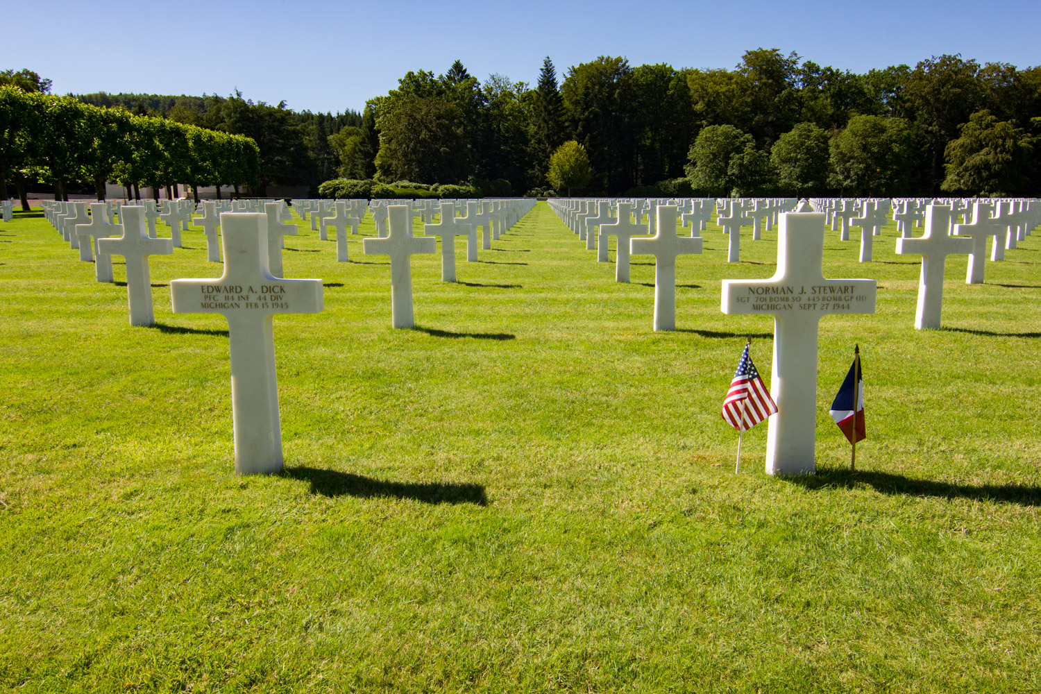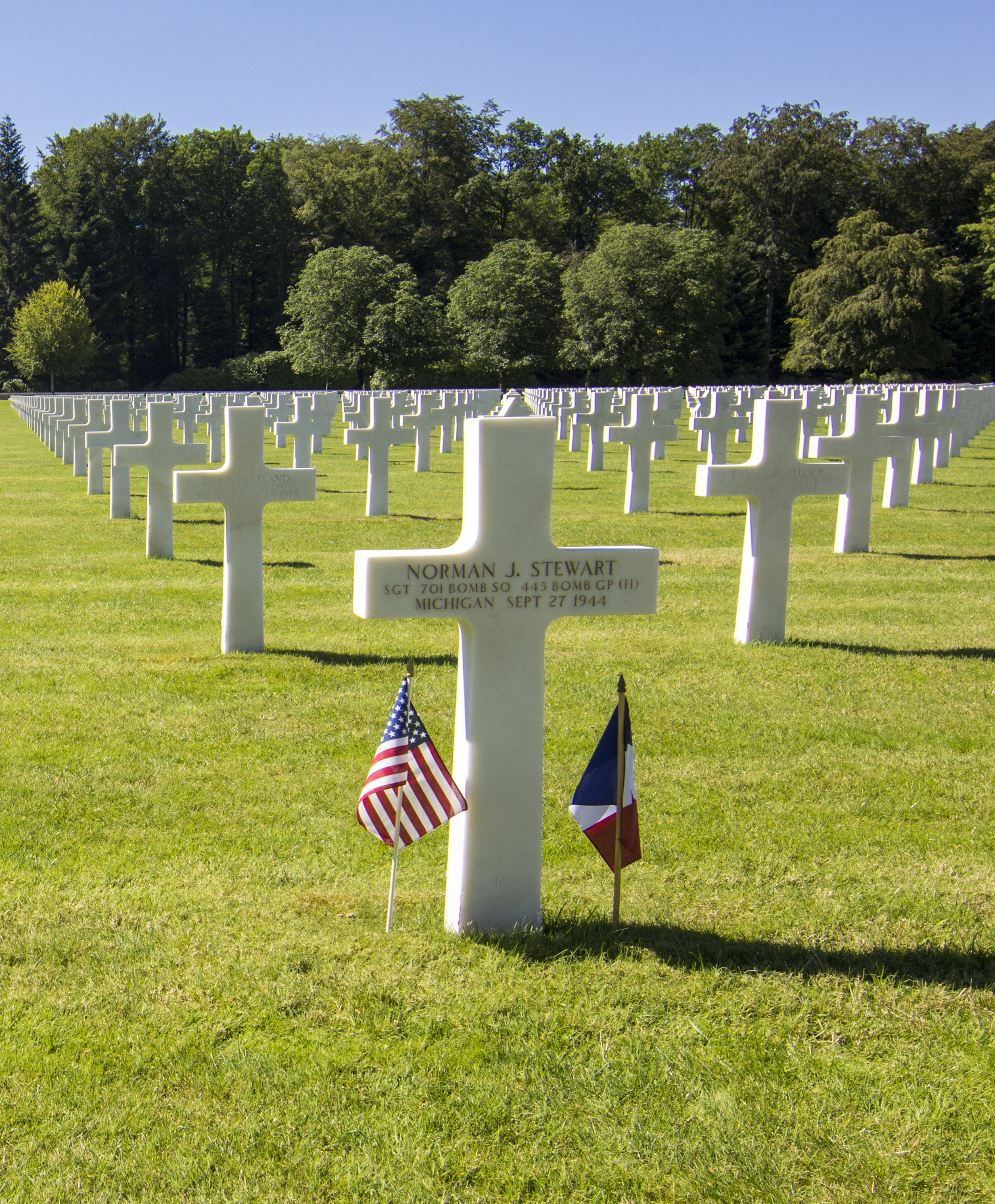 Preperato, Chris. Norman J. Stewart and Edward A. Dick’s graves at Epinal American Cemetery. Photographs. July 19, 2016.