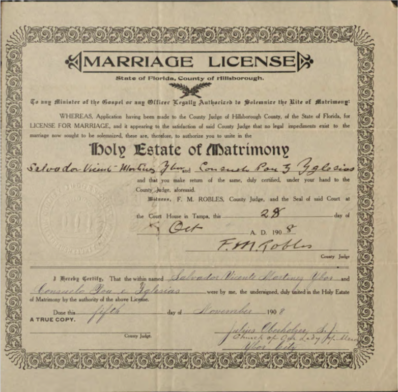 In addition to opening the first cigar factory, Vicente also created the Florida Brewing Company, later led by his son, Salvador, Sr. In addition to working in the family businesses, Salvador, Sr., was also very involved in civic organizations and served as the president of El Circulo Cubano, a prominent and influential mutual aid and cultural organization in Ybor City.